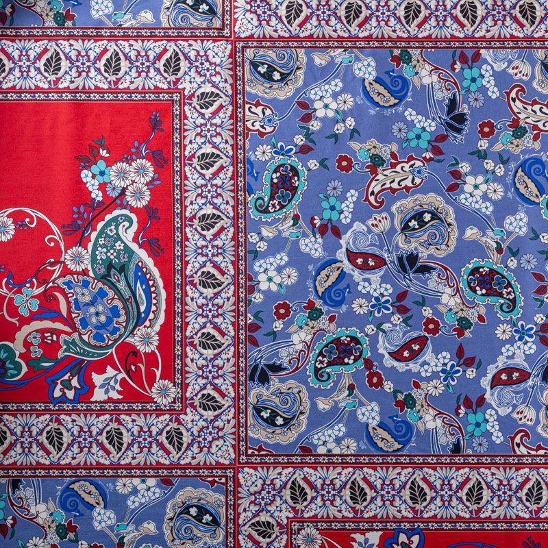 Плательно-рубашечный купонный хлопок с растительным узором в красно-синих тонах - хит этого летнего сезона. Ткань имеет плотное переплетение, матовую гладкую поверхность, хорошо держит форму, не прозрачная. Подойдет для пошива рубашек, платья-рубашки, юбки, сарафана, туники, домашней одежды.