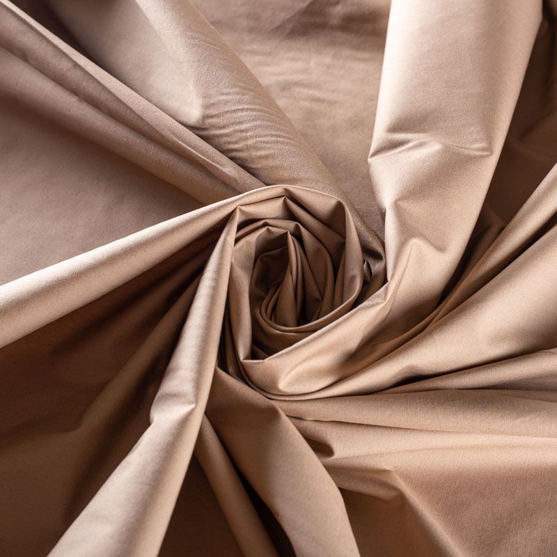 Итальянский плательно-рубашечный хлопок благородного бежевого оттенка. Ткань лёгкая, непрозрачная, поверхность матовая, гладкая, приятная к телу, хорошо драпируется, тянется за счет эластана в составе. Прекрасно подойдет блузы, платья-рубашки, летнего сарафана, туники.