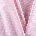 Плательно-блузочная ткань из натурального хлопка в мелкий горошек. Ткань легкая, тонкая, хорошо "дышит", мягкая, не прозрачная, немного тянется за счет эластана в составе. Подойдет для пошива летнего платья, летящей юбки, блузы, сарафана, комбинезона или рубашки.