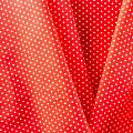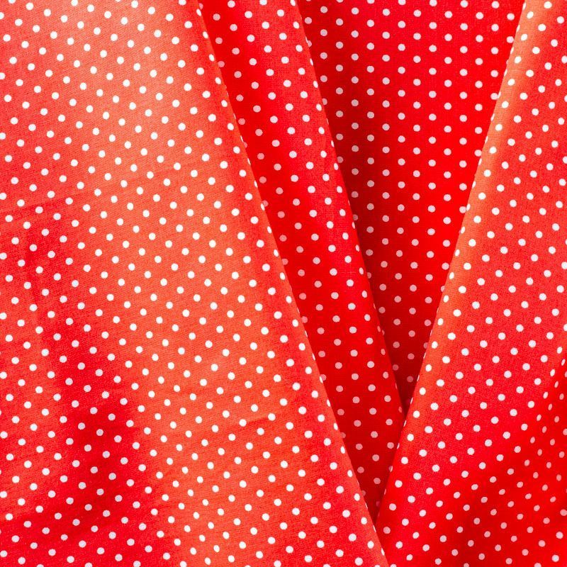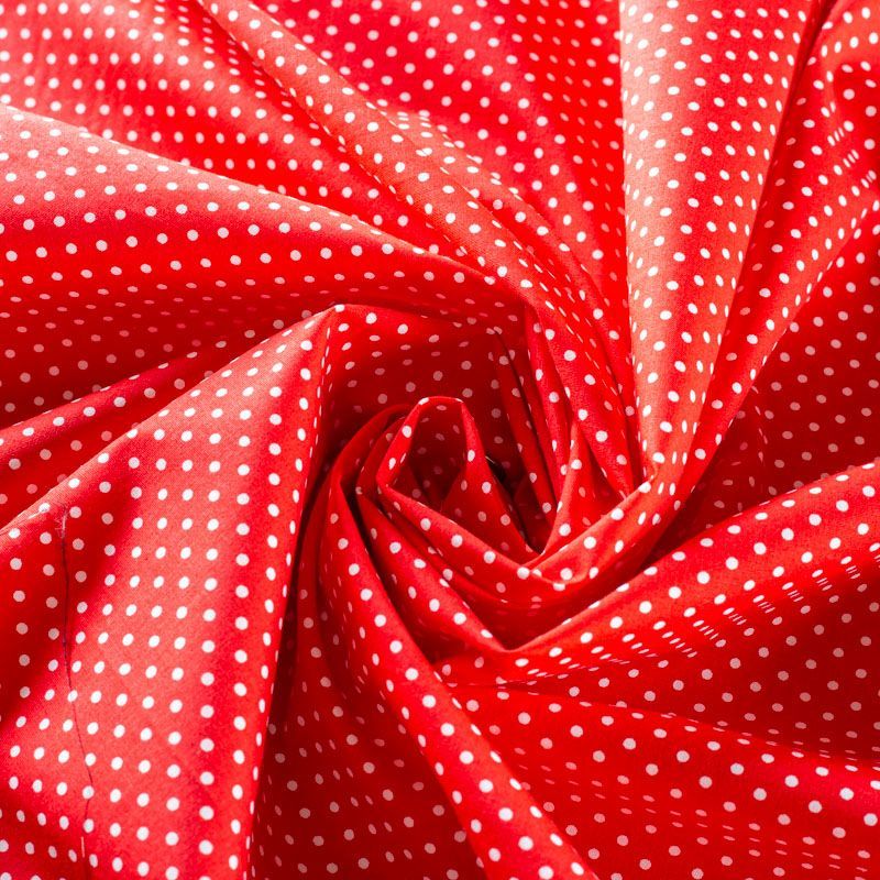 Плательно-блузочная ткань из натурального хлопка в мелкий горошек. Ткань легкая, тонкая, хорошо "дышит", мягкая, не прозрачная, немного тянется за счет эластана в составе. Подойдет для пошива летнего платья, летящей юбки, блузы, сарафана, комбинезона или рубашки.