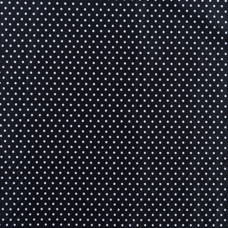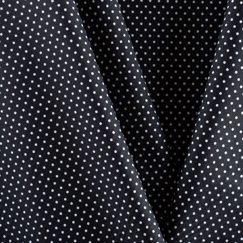 Плательно-блузочная ткань из натурального хлопка в мелкий горошек. Ткань легкая, тонкая, хорошо "дышит", мягкая, не прозрачная, немного тянется за счет эластана в составе. Подойдет для пошива летнего платья, летящей юбки, блузы, сарафана, комбинезона или рубашки.