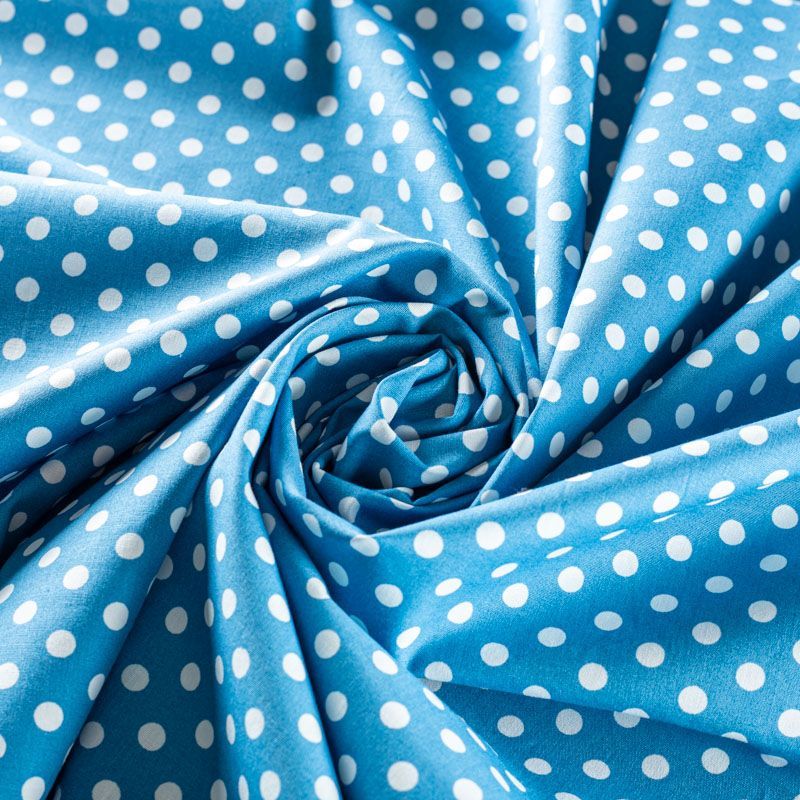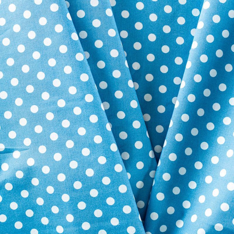 Плательно-блузочная ткань из натурального хлопка с принтом горох. Ткань легкая, тонкая, хорошо "дышит", мягкая, не прозрачная, немного тянется за счет эластана в составе. Подойдет для пошива летнего платья, летящей юбки, блузы, сарафана, комбинезона или рубашки.