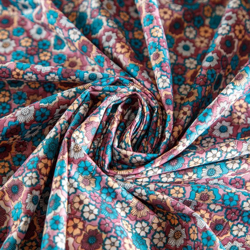 Плательно-рубашечная ткань из натурального хлопка в мелкий абстрактно-цветочный рисунок. Ткань легкая, тонкая, хорошо "дышит", слегка держит форму, не сухая, не прозрачная. Подойдет для пошива летнего платья, летящей юбки, блузы, сарафана, комбинезона или рубашки, а также для домашней одежды.