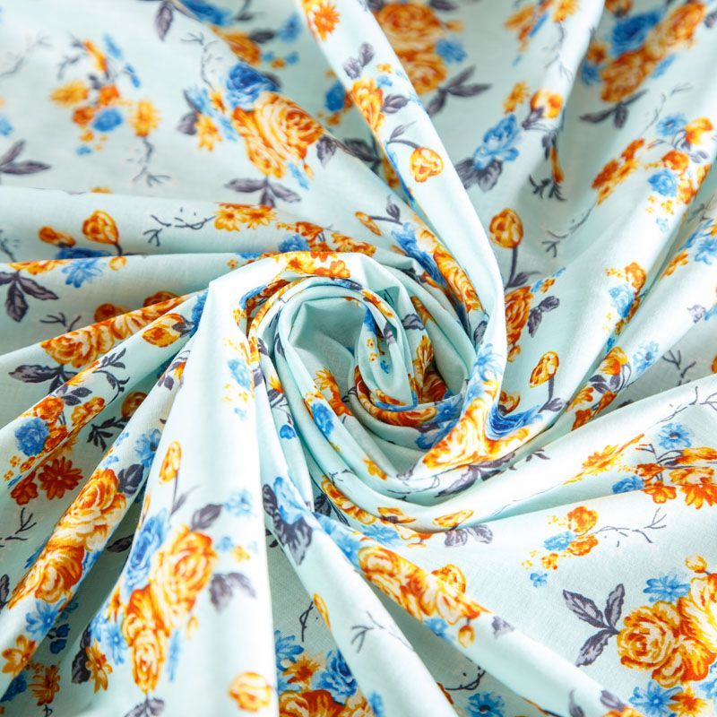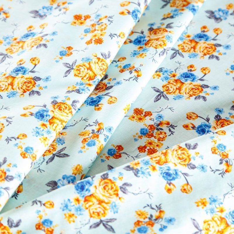 Плательно-рубашечная ткань из натурального хлопка с ярким цветочным принтом. Ткань легкая, тонкая, хорошо "дышит", слегка держит форму, не сухая, не прозрачная. Подойдет для пошива летнего платья, летящей юбки, блузы, сарафана, комбинезона или рубашки, а также для домашней одежды.