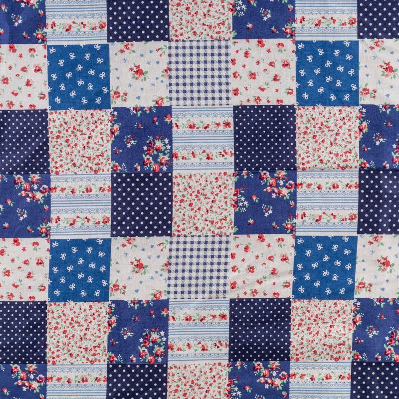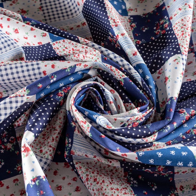 Ткань из натурального хлопка с рисунком в виде сшитых между собой разных лоскутков (печворк). Размер клетки 5*5 см. Ткань легкая, хорошо "дышит", мягкая, слегка прозрачная. Подойдет для пошива белья, рукоделия, печворка, изготовления предметов интерьера.
