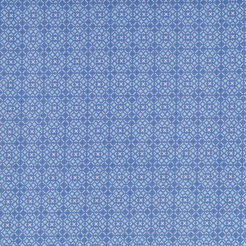 На синем фоне мелкий абстрактный рисунок в восточном стиле белого цвета.