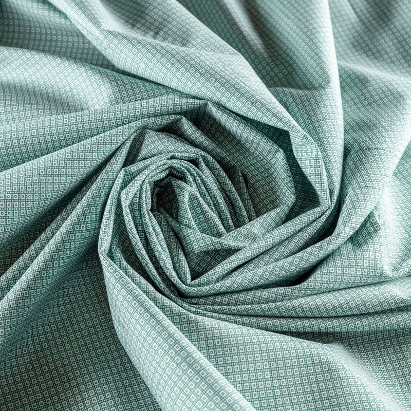 На белом фоне мелкий геометрический узор зеленого цвета.
