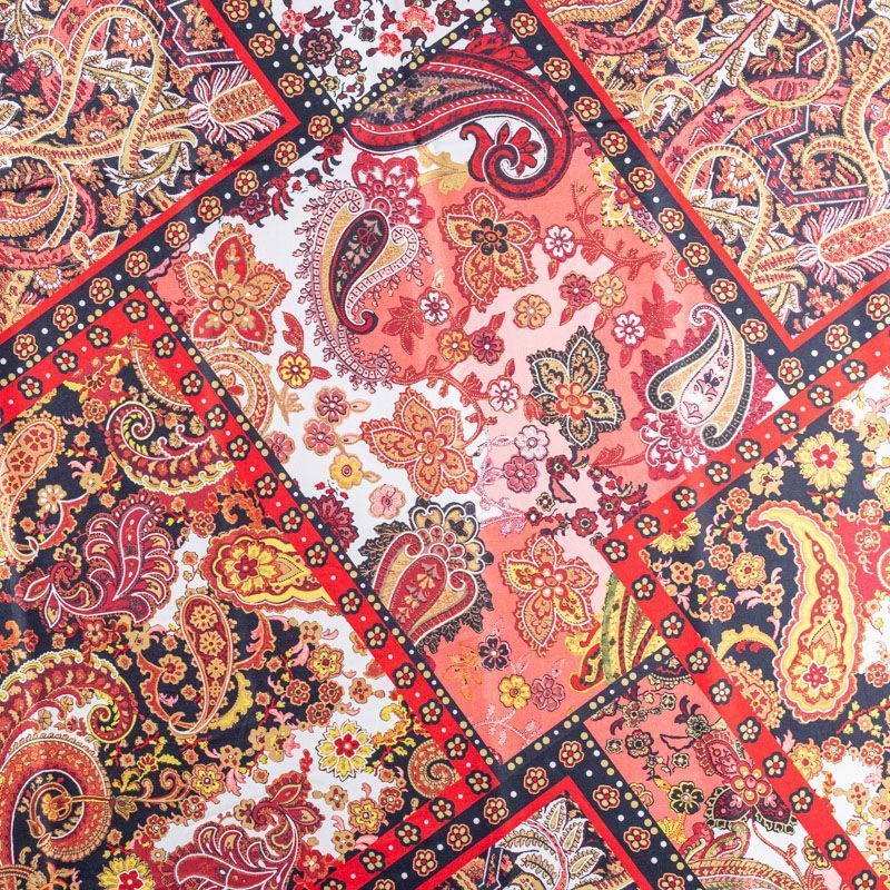 Плательно-рубашечный натуральный хлопок от французского дизайнера в красных, бежевый и черных оттенках с крупным орнаментом. Ткань имеет плотное переплетение, матовую гладкую поверхность, хорошо держит форму, не прозрачная. Подойдет для пошива рубашек, платья-рубашки, юбки, сарафана, туники, домашней одежды.