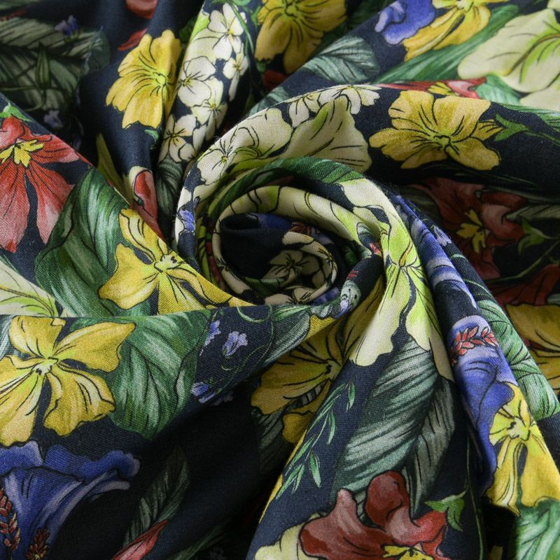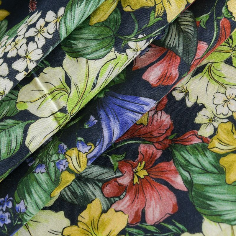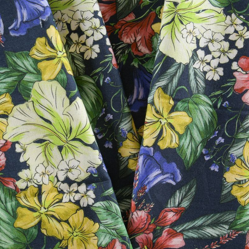 Хлопок стрейч 063-12073 темно-синий принтованный