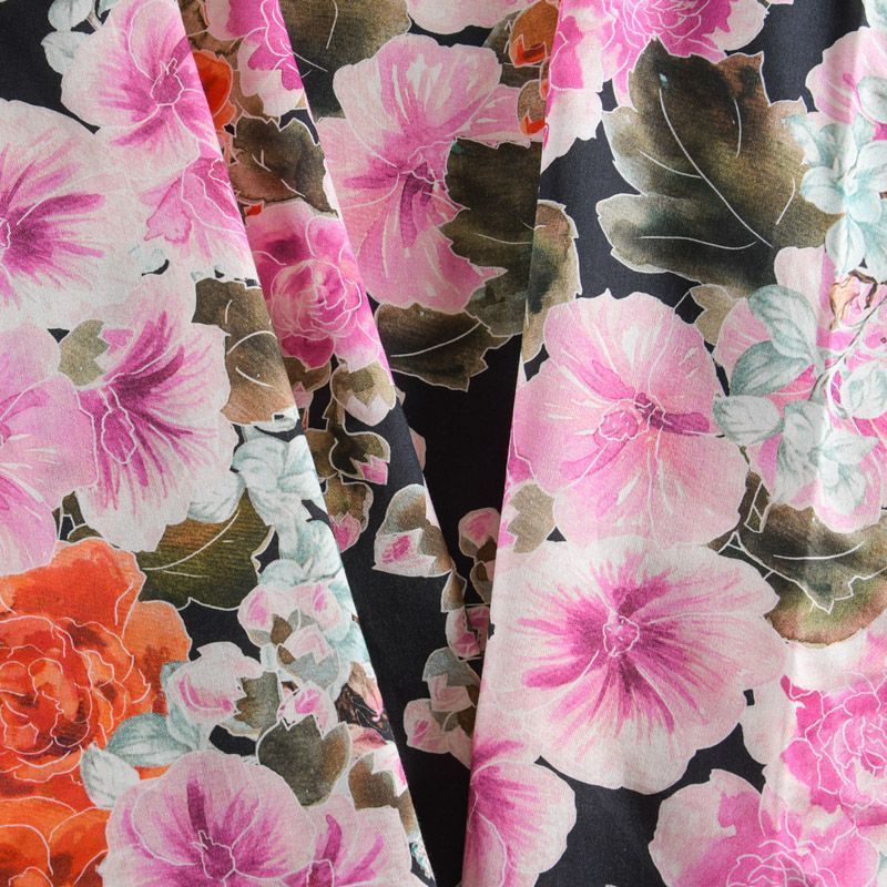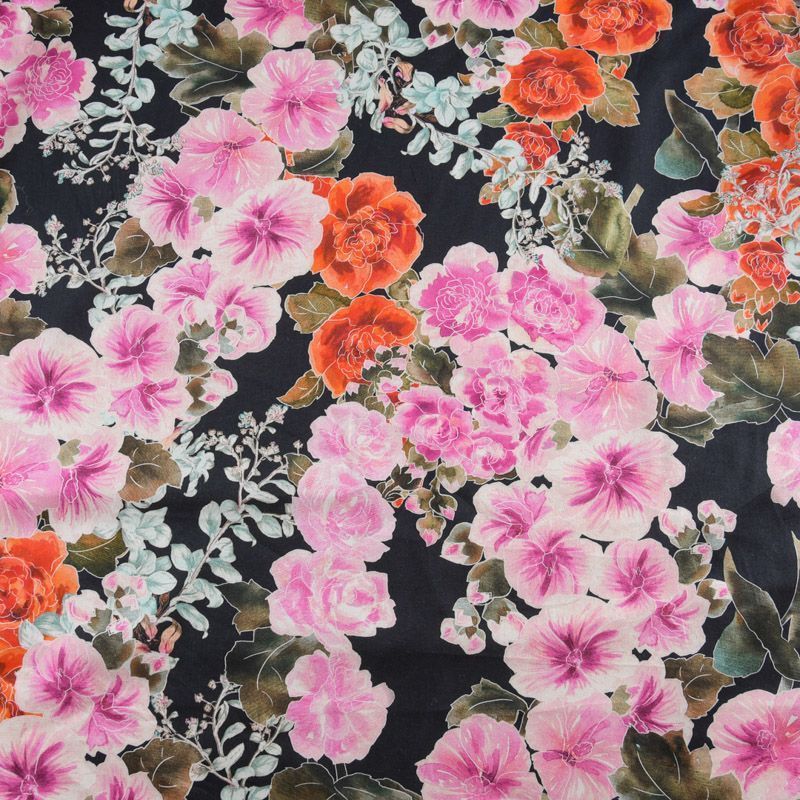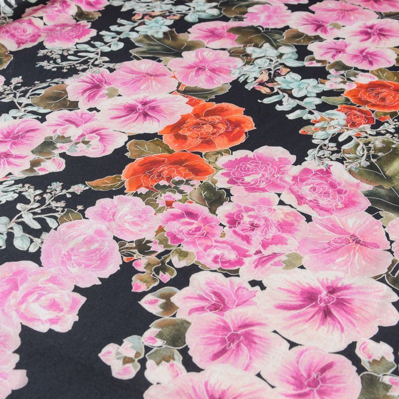 Хлопок стрейч 063-12101 черный принтованный в Салехарде