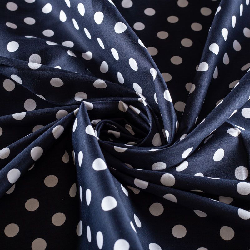 Итальянский костюмно-плательный хлопок черного цвета в белый горох. Ткань приятная на ощупь тянется за счет эластана в составе, непрозрачная, средней плотности, поверхность гладкая, матовая. Подойдет для пошива костюма, жакета, юбки, платья и других изделий на весенне-летний сезон.
