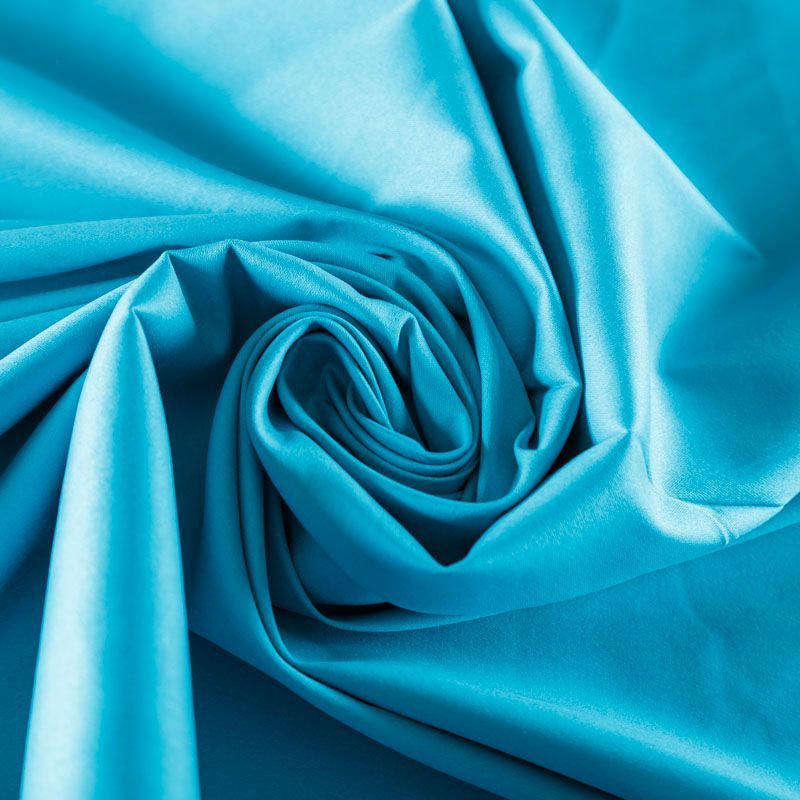 Коттон средней плотности бирюзового оттенка, мягкий, приятный на ощупь, эластичный, держит форму, смотрится красиво. Подойдет для пошива костюма, жакета, юбки, платья и других изделий на теплый и прохладный сезоны.