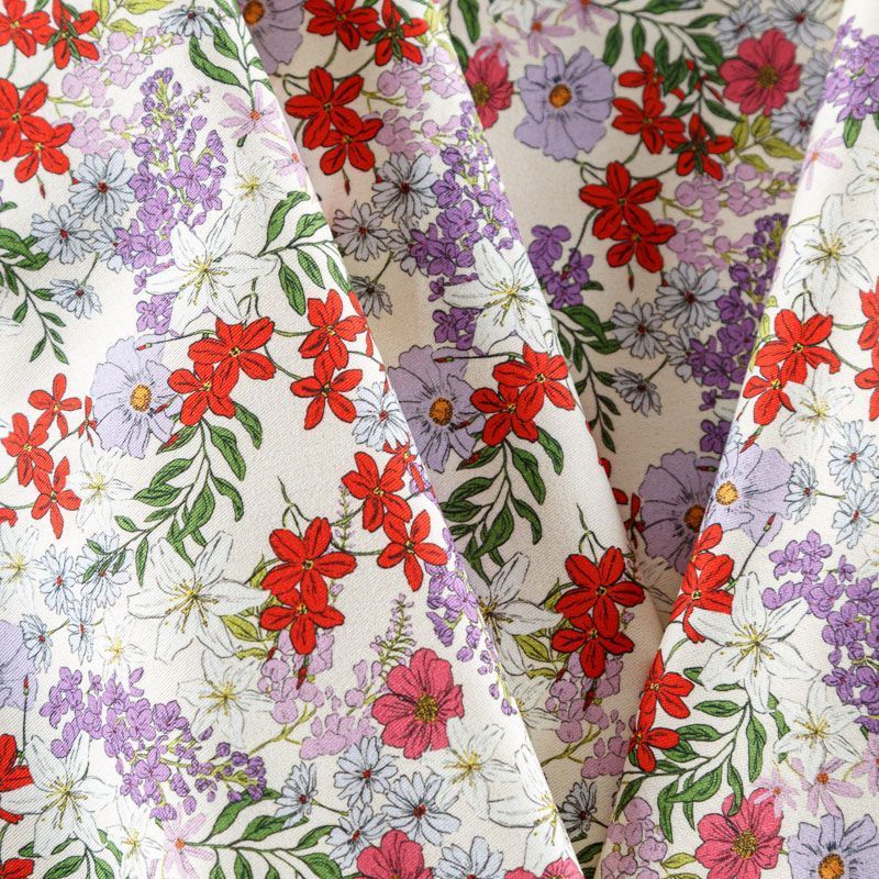 Итальянская хлопковая ткань плательной плотности в разбеленном желтом оттенке с цветочным принтом. Мягкая, приятная на ощупь, эластичная, держит форму, смотрится красиво, женственно. Подойдет для пошива костюма, легкого жакета, летней куртки, юбки, шорт, платья и других изделий.