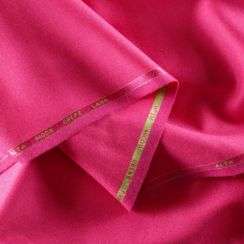Итальянский шерстяной креп в ярком оттенке фуксии. Ткань мягкая, пластичная, образует мягкие фалды, не просвечивает, тянется за счет эластана в составе. Подойдет для пошива весенне-осеннего костюма, платья, комбинезона, юбки, брюк
