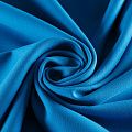 Итальянский креп костюмно-плательной плотности в сине-голубом оттенке, поверхность матовая, слегка зернистая. Ткань мягкая, пластичная, образует мягкие фалды, не просвечивает, тянется за счет эластана в составе. Подойдет для пошива весенне-осеннего костюма, платья, комбинезона, юбки, брюк