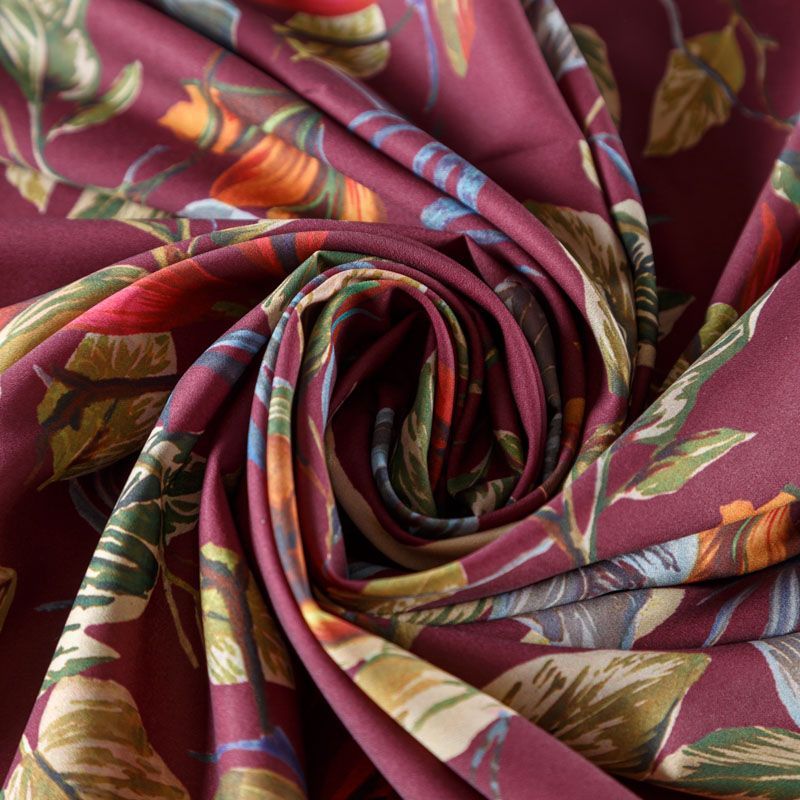 Плательный креп с цветочным принтом. Ткань средней плотности, не толстая, пластичная, поверхность полотна матовая, с характерной мелкозернистой фактурой, прочная, практически не мнется, хорошо драпируется. Превосходно подойдет для пошива стильного костюма, юбки, платья, комбинезона, топа, брюк.