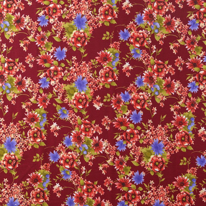 Плательный креп с цветочным принтом. Ткань средней плотности, не толстая, пластичная, поверхность полотна матовая, с характерной мелкозернистой фактурой, прочная, практически не мнется, хорошо драпируется. Превосходно подойдет для пошива стильного костюма, юбки, платья, комбинезона, топа, брюк.