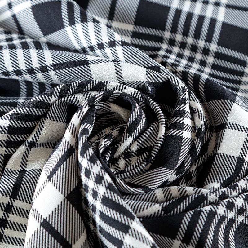 Плательная ткань средней плотности, имеет фактурную матовую поверхность, не просвечивает, пластичная, хорошо драпируется мягкими складками, струится, тянется за счет эластана в составе. Подходит для пошива платья и сарафана, юбки, блузки, туники, топа, комбинезона.