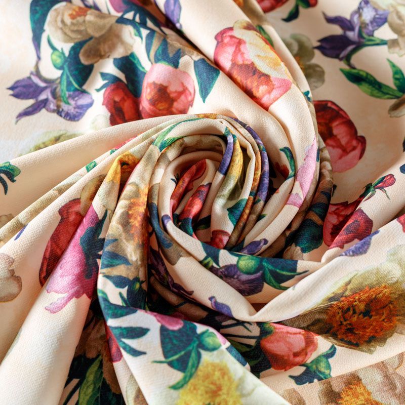 Креп 026-08352 сливочный принтованный в Салехарде
