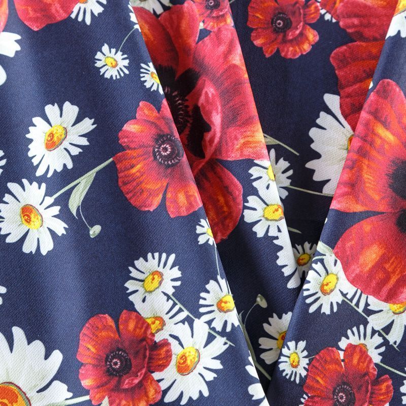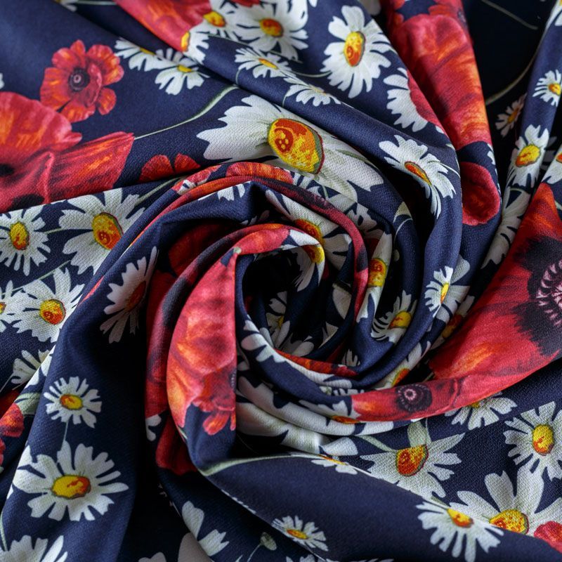 Креп 026-08372 темно-синий принтованный