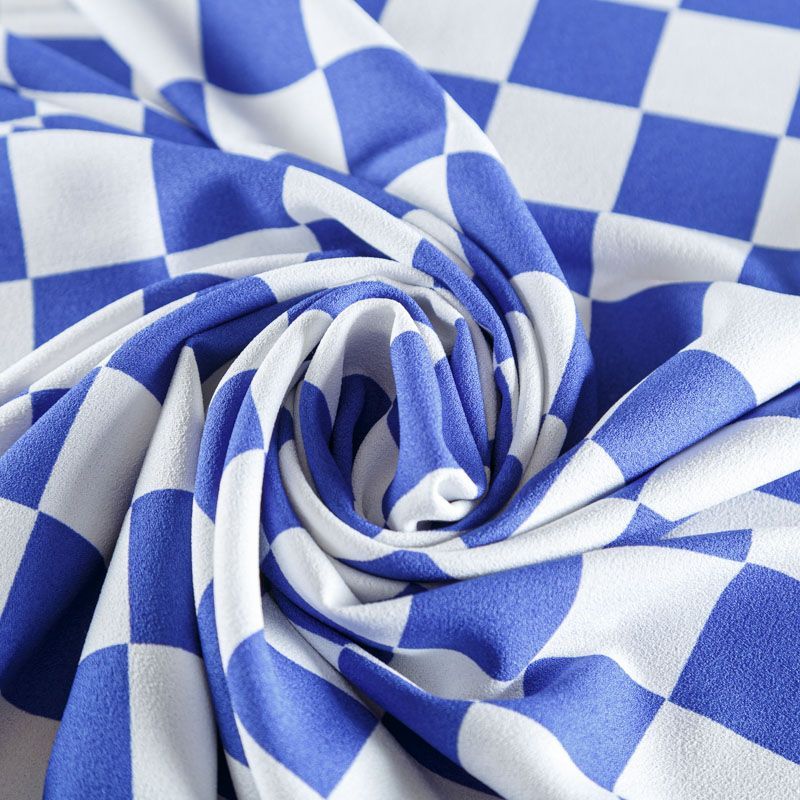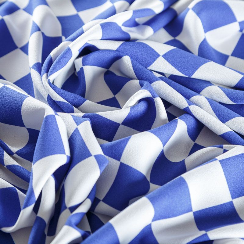 Плательный креп с геометрическим принтом. Ткань средней плотности, не толстая, пластичная, поверхность полотна матовая, с характерной мелкозернистой фактурой, прочная, практически не мнется, хорошо драпируется. Превосходно подойдет для пошива стильного костюма, юбки, платья, комбинезона, топа, брюк.