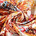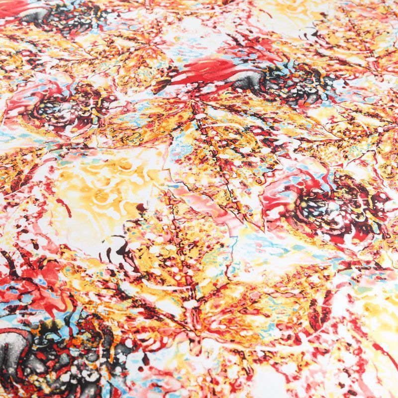 Плательный креп с абстрактным принтом. Ткань средней плотности, не толстая, пластичная, поверхность полотна матовая, с характерной мелкозернистой фактурой, прочная, практически не мнется, хорошо драпируется. Превосходно подойдет для пошива стильного костюма, юбки, платья, комбинезона, топа, брюк.