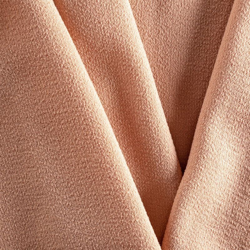Итальянский шерстяной креп в сложном крамельно-персиковом оттенке. Ткань мягкая, пластичная, образует мягкие фалды, слегка просвечивает, тянется за счет эластана в составе. Подойдет для пошива весенне-осеннего костюма, платья, комбинезона, юбки, брюк.