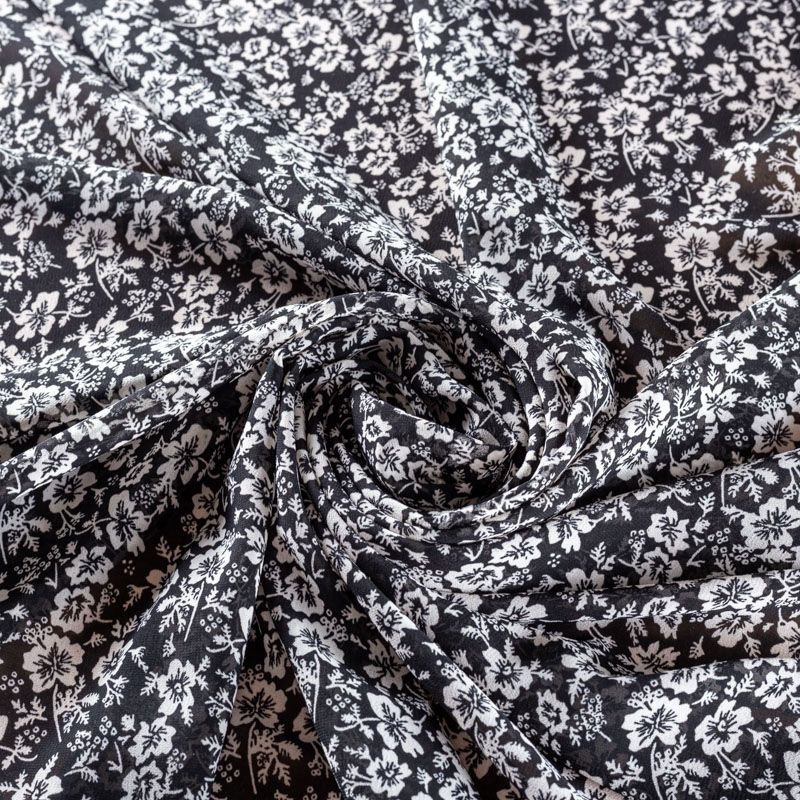 Креп-шифон 027-01437 черный принтованный в Салехарде