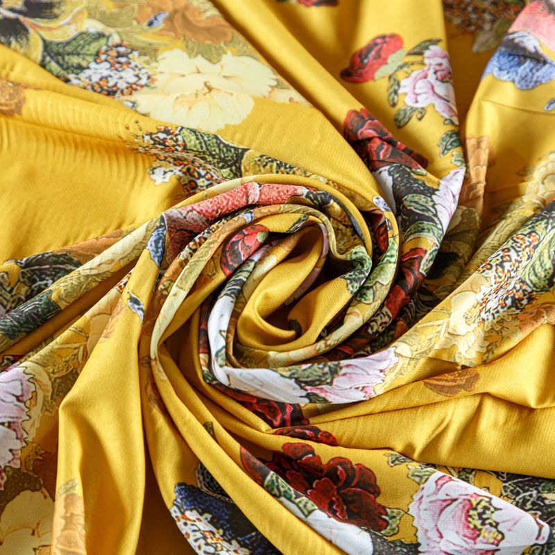 Креп-шифон 027-08221 темно-желтый принтованный в Салехарде