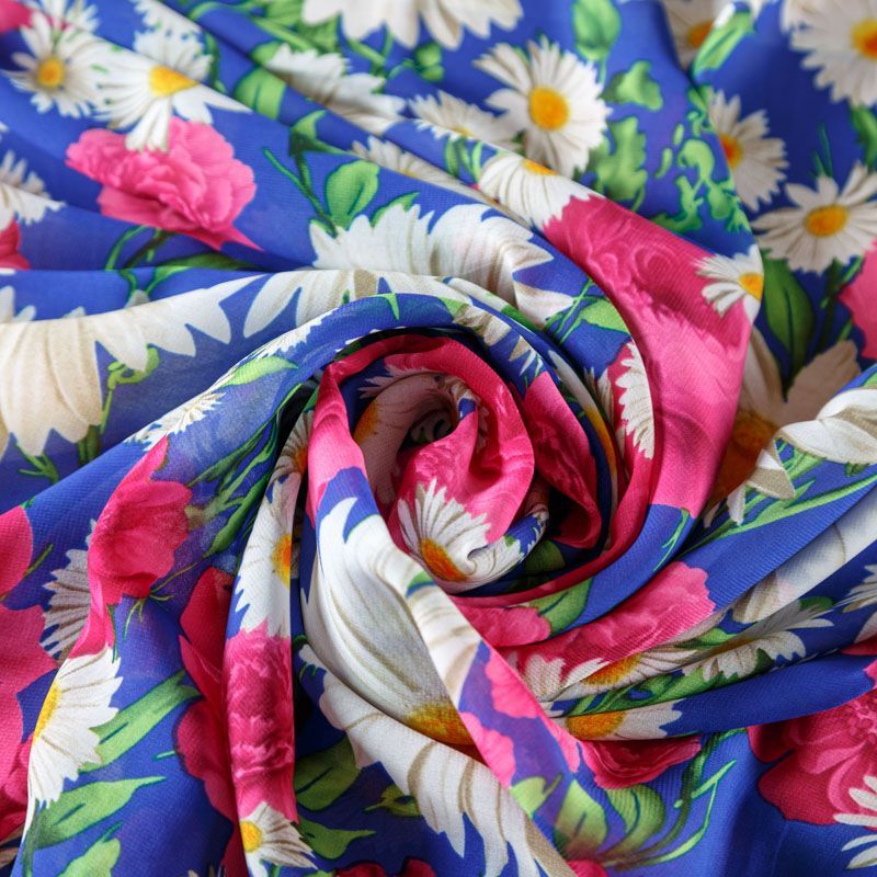 Креп-шифон 027-08233 синий принтованный в Салехарде