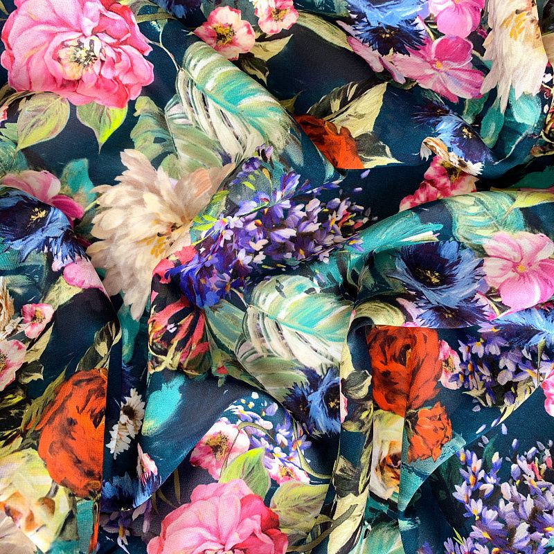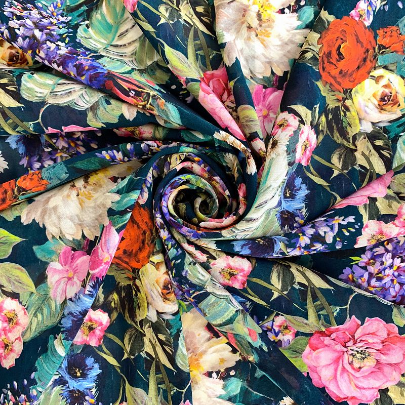 Креп-шифон натуральный К32-230 сине-зеленый принтованный в Салехарде