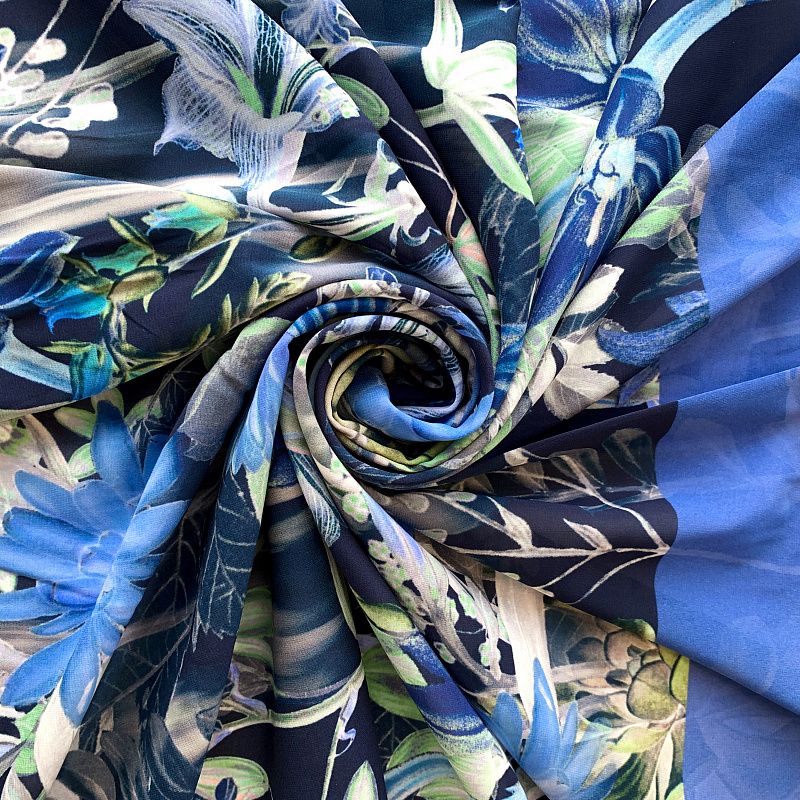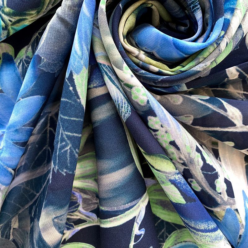 Креп-шифон натуральный К32-375 темно-синий принтованный в Салехарде