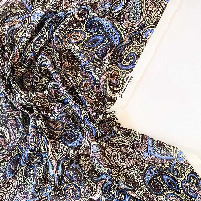 Креп-шифон натуральный К32-443 фиолетово-салатовый принтованный