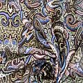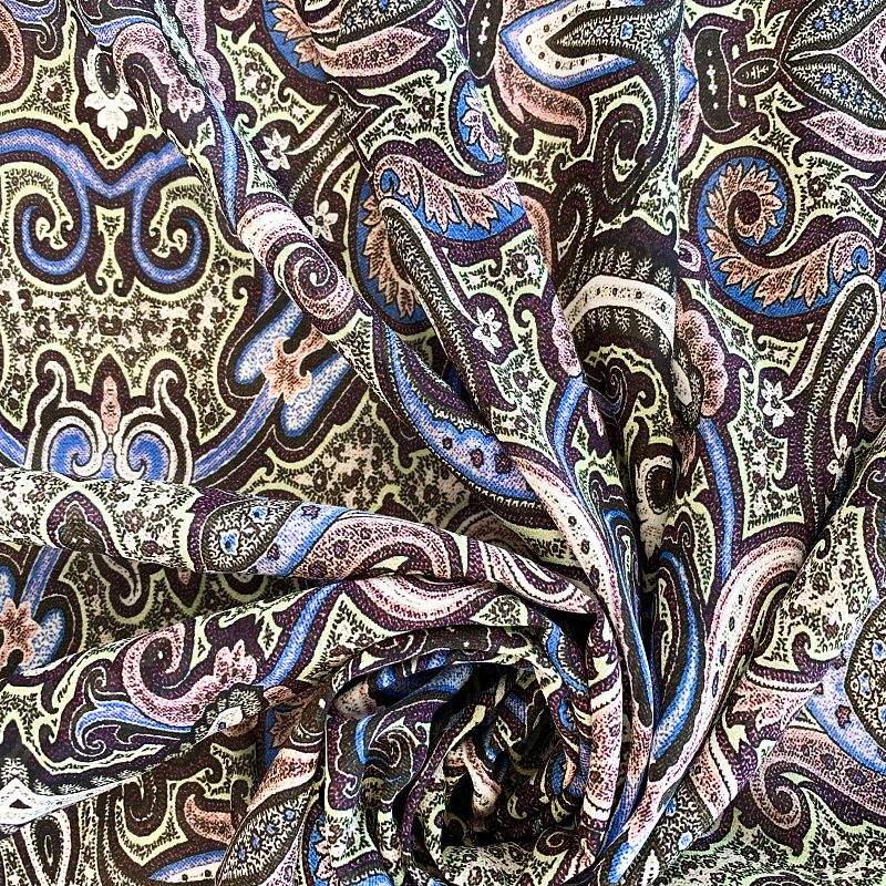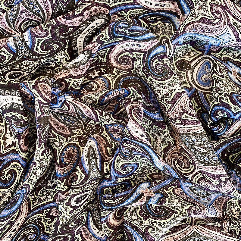 Креп-шифон натуральный К32-443 фиолетово-салатовый принтованный в Салехарде