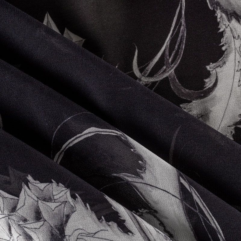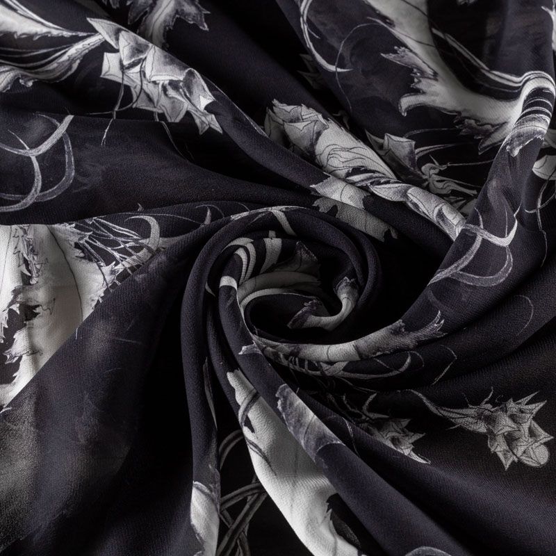 Креп-шифон натуральный К36-066 черный принтованный в Салехарде