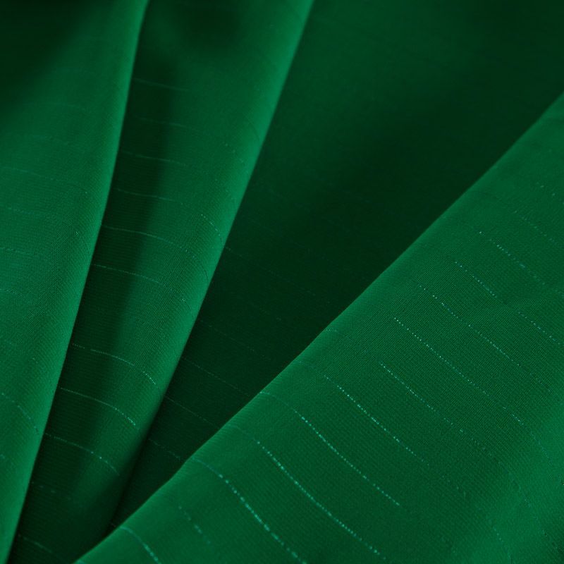 Итальянский смесовый креп-шифон Gucci в насыщенном зеленом оттенке с тонкими полосками люрекса. Полоски расположены горизонтально по ширине рулона.