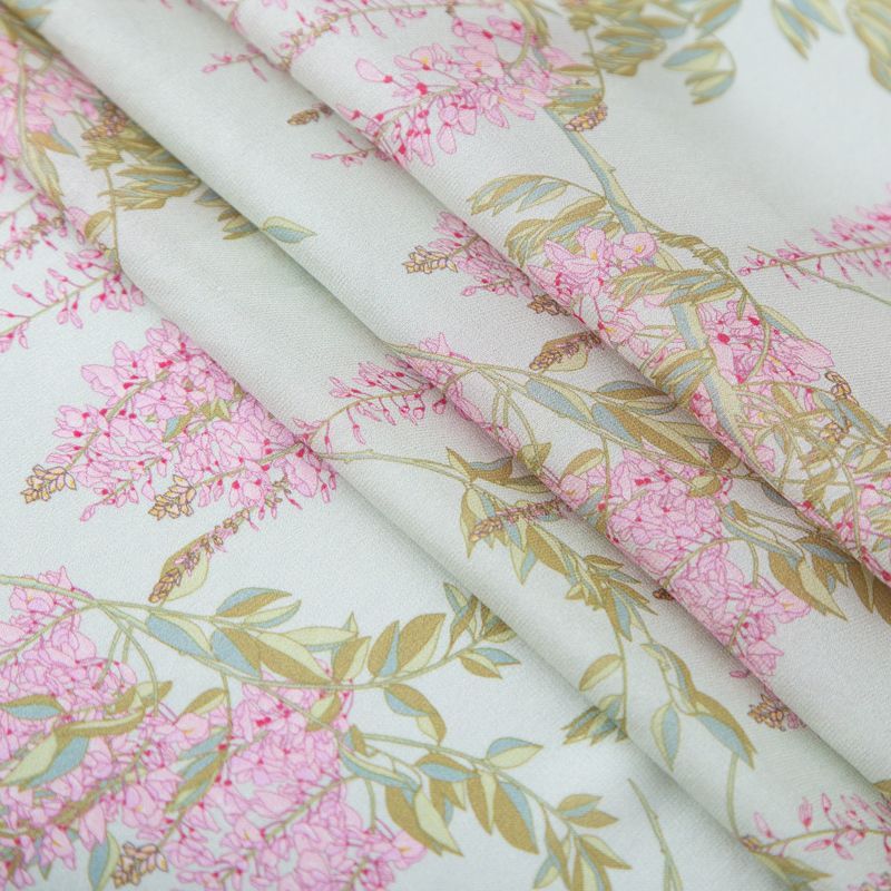 Креп-шифон шелковый 027-19850 разбеленный мятный принтованный в Салехарде