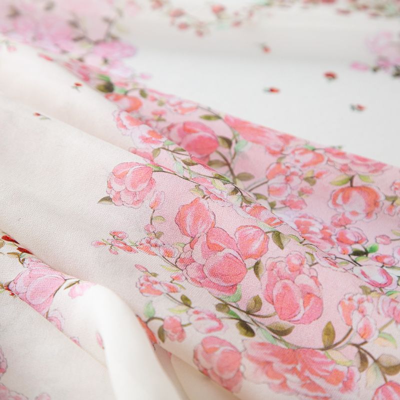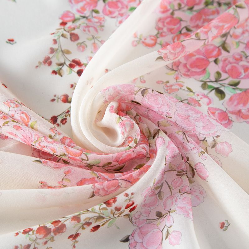 Креп-шифон шелковый 027-20215 молочный принтованный в Салехарде
