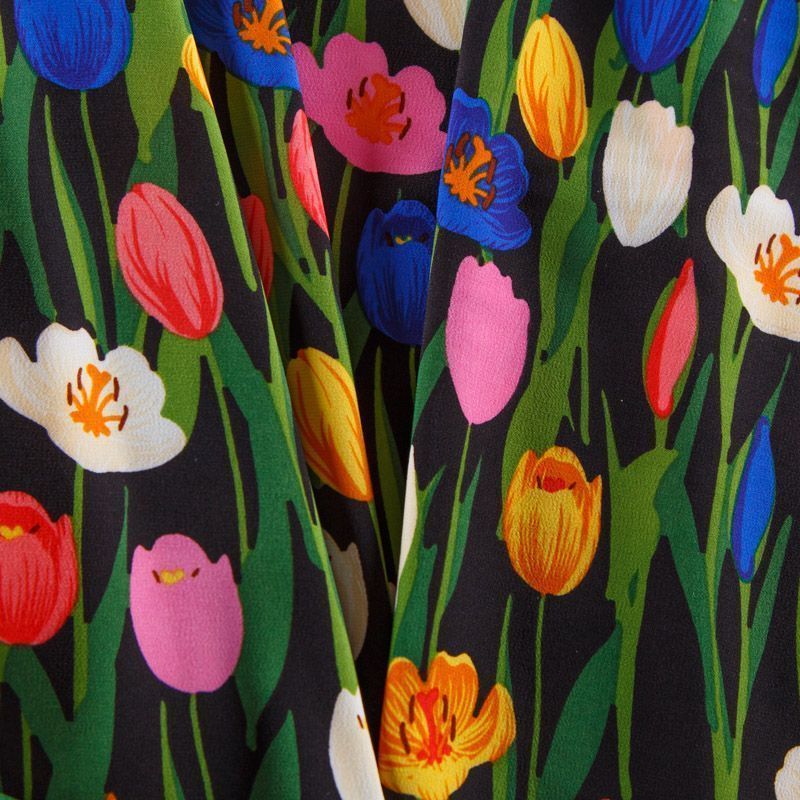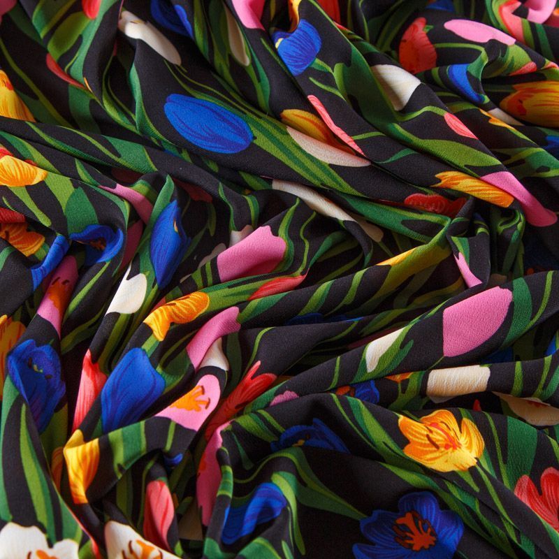 Креп-шифон стрейч 027-13093 черный принтованный в Салехарде