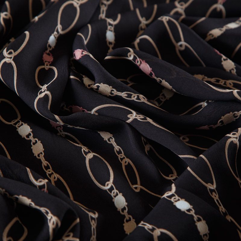 Итальянский вискозный креп-шифон из коллекции Hermes в черном цвете с традиционным для бренда принтом.