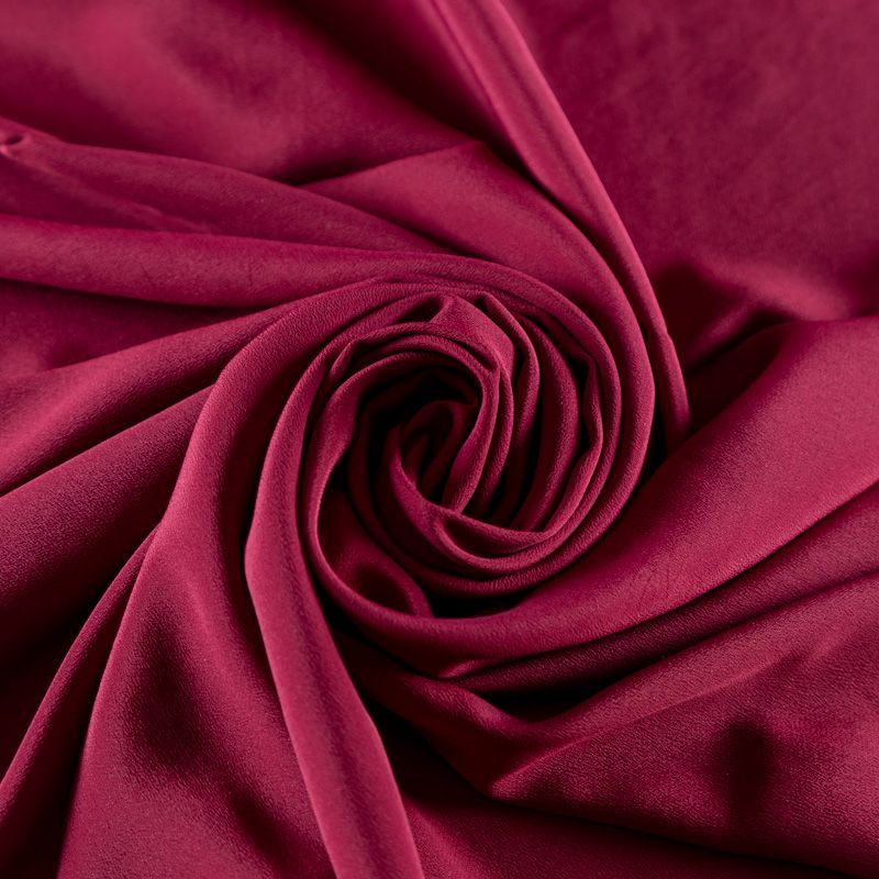 Итальянский натуральный шелковый крепдешин в ягодном оттенке, фактурный, легкий и струящийся, слегка просвечивает, отлично драпируется., тянется за счет эластана в составе. Идеально подойдет для пошива платьев и сарафанов расклешенных моделей, с воланами, летящих юбок, топов, блузки, юбки, широких брюк, костюма в пижамном стиле.