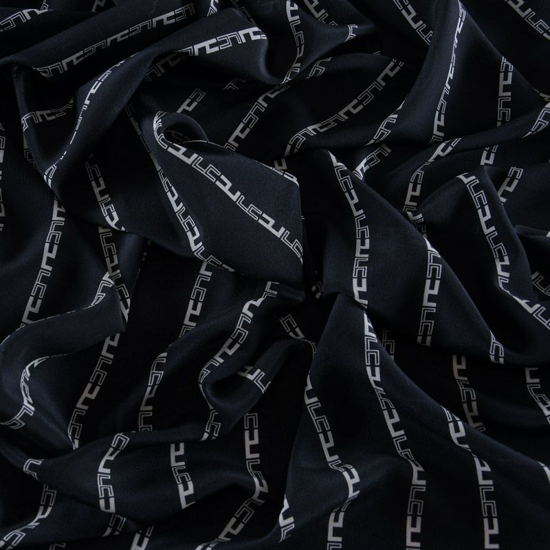 Крепдешин натуральный 028-11941 черный принтованный в Салехарде