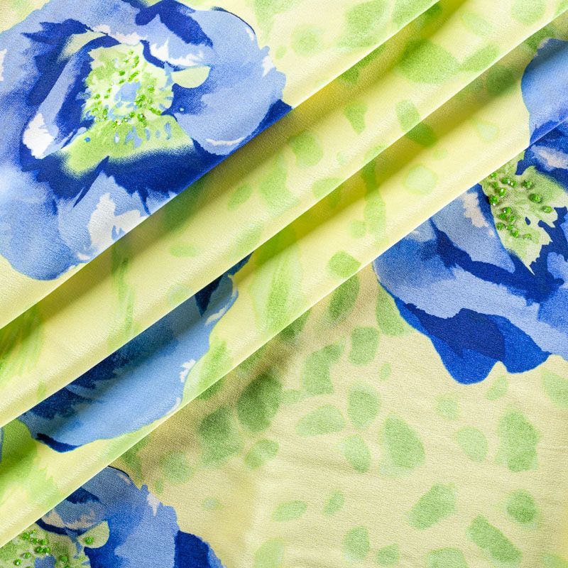 Крепдешин натуральный К01-651 салатовый принтованный в Салехарде