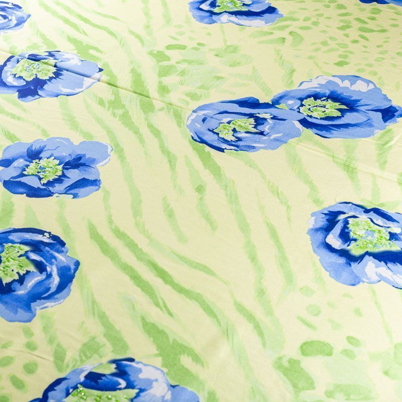 Натуральный шелковый крепдешин с матовой поверхностью, легкий, струящийся, хорошо драпируется. Актуальное сочетание яркого цветочного принта с анималистичными мотивами подойдет для пошива летнего сарафана, платья, блузки, костюма в пижамном стиле, широких брюк или юбки.