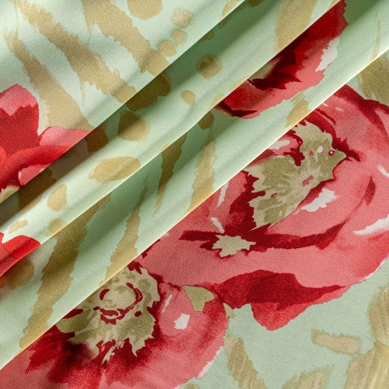 Крепдешин натуральный К01-653 фисташковый принтованный в Салехарде