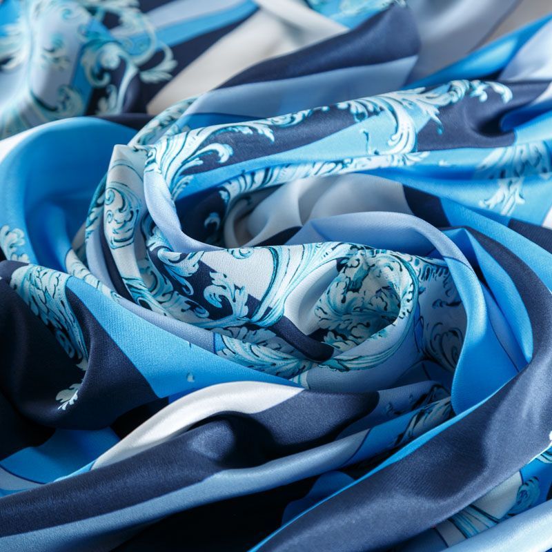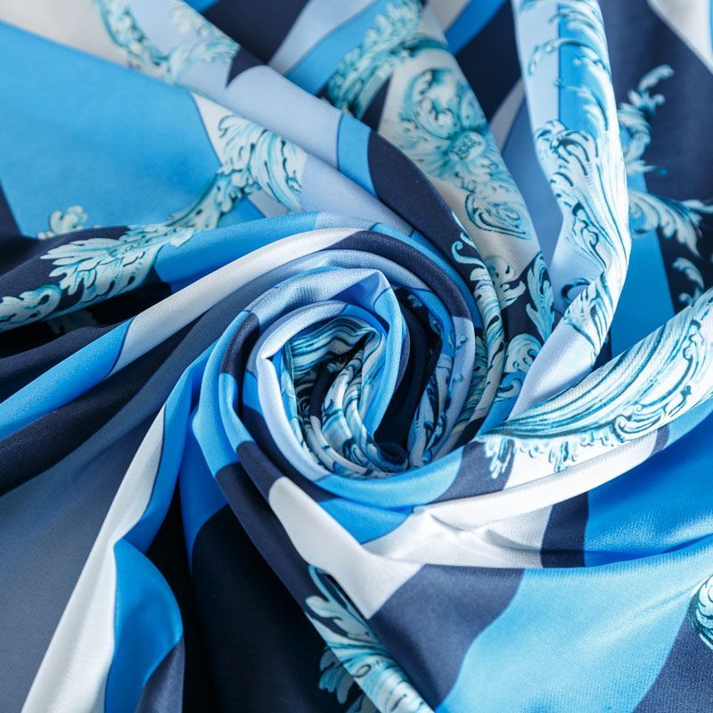 Крепдешин натуральный К01-762 серо-голубой принтованный в Салехарде