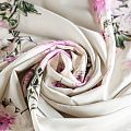 Итальянский натуральный крепдешин с цветочным принтом, тонкий, слегка прозрачный, отлично драпируется, легкий и струящийся с креповой поверхностью. Идеально подойдет для пошива платьев и сарафанов расклешенных моделей, с воланами, летящих юбок, топов, блузки, костюма в пижамном стиле.