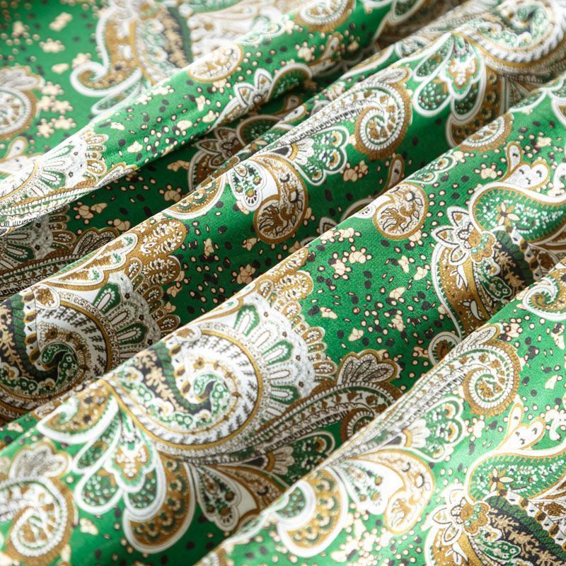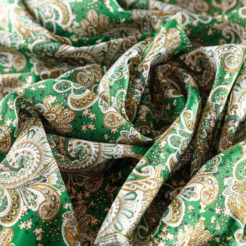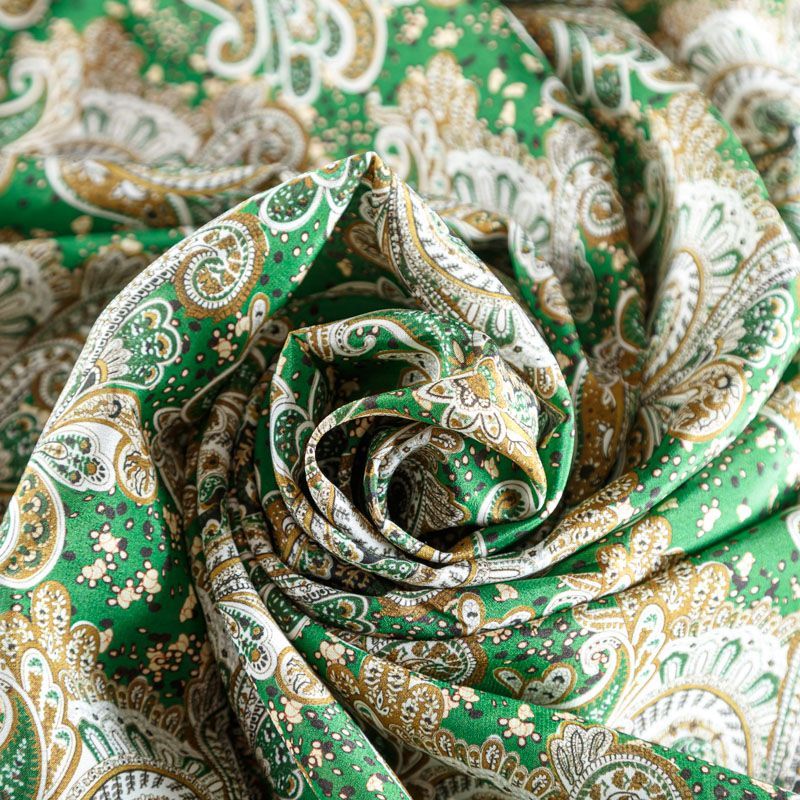 Крепдешин натуральный К24-023 зеленый принтованный в Салехарде