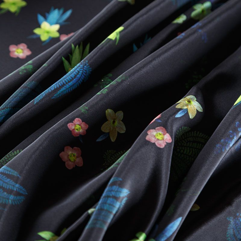 Крепдешин натуральный К24-032 черный принтованный в Салехарде