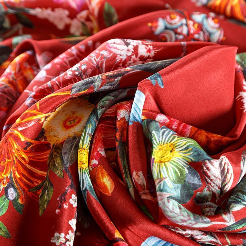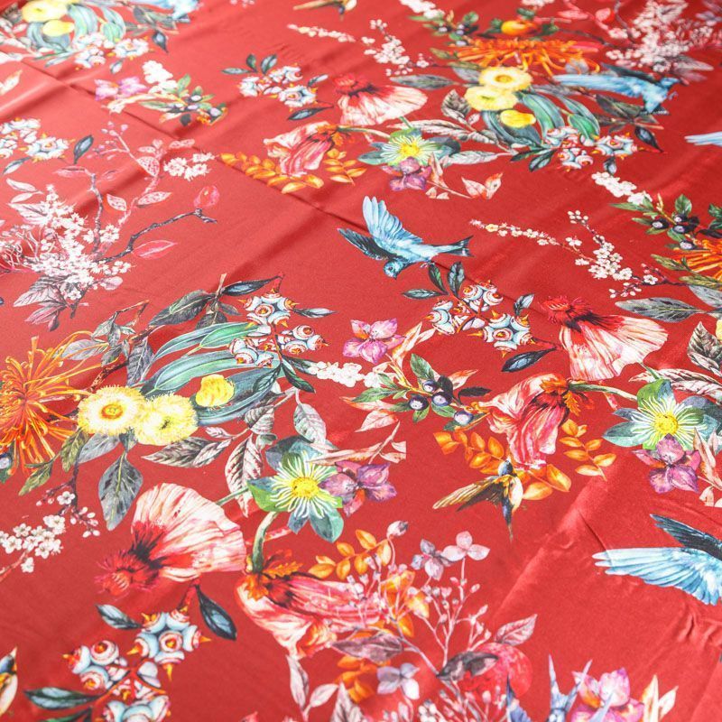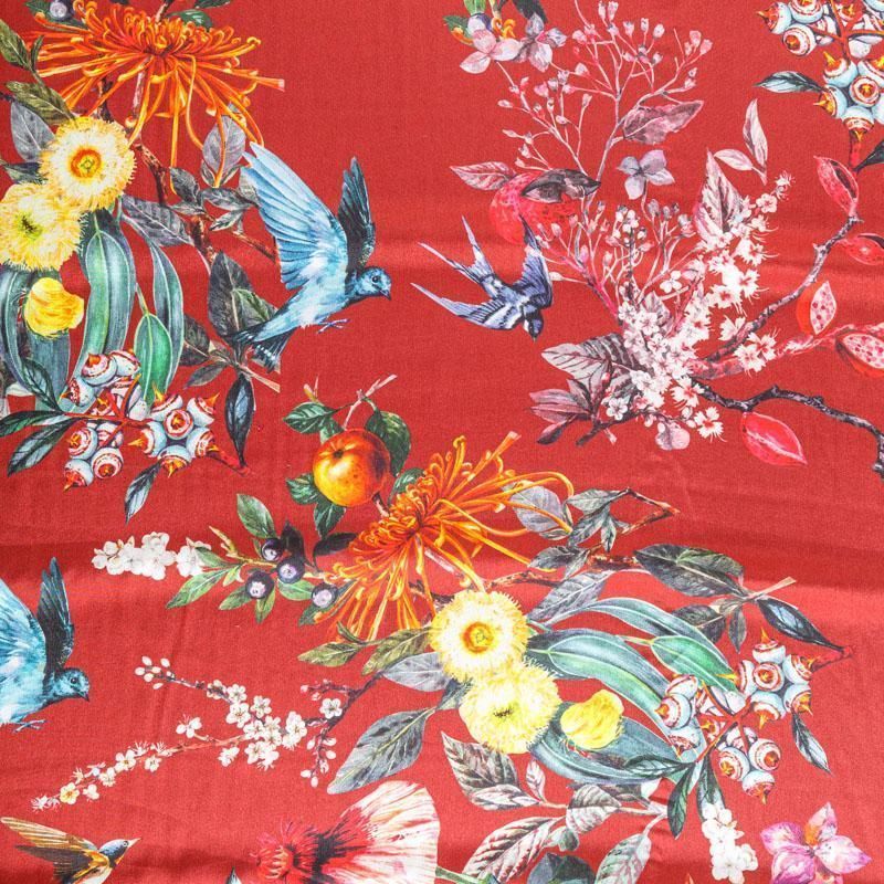 Крепдешин натуральный К24-040 красный принтованный в Салехарде